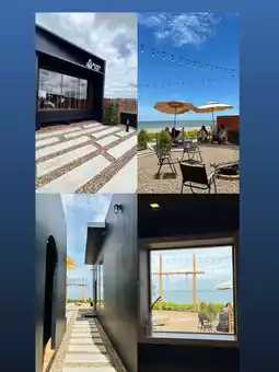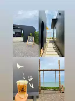 Located in Puek Tian Subdistrict, the cafe features a stylish black tone with a cozy vibe. Inside, the air-conditioned room has a popular spot with a window frame offering a view of the sea outside, perfect for taking photos from every angle. Outside, there are camping-style chairs mixed with Japanese aesthetics, providing a stunning sea view. It's recommended to visit in the afternoon when it's not too hot, and the atmosphere is delightful.