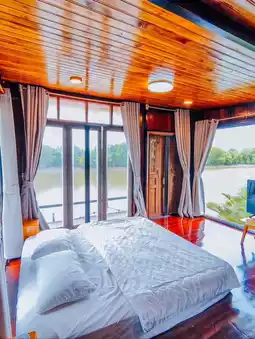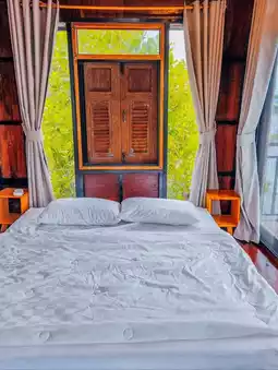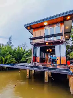 You'll be greeted by a view of the Bang Tabun River, where fishing boats cruise by and a cool breeze blows throughout the day. In the evening, you'll catch a stunning sunset over the water. 🌅