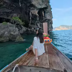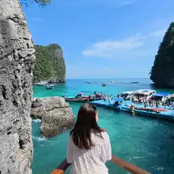 🌊 A seaside cafe on Phi Phi Island. Get off the boat and you can enter the cafe right away. It's awesome. The atmosphere is super nice.