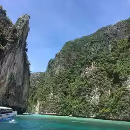 🏝️ Phi Phi Island | Clear blue sea with a rocky mountain in the middle of the water