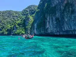 Hop on a long-tail boat or speedboat to visit stunning beaches and coves like 'Maya Bay' and 'Pileh Lagoon' on Phi Phi Leh Island. 'Pileh Lagoon,' in particular, is a serene and calm cove resembling a natural pool, offering an unforgettable experience of diving off the boat for a swim.