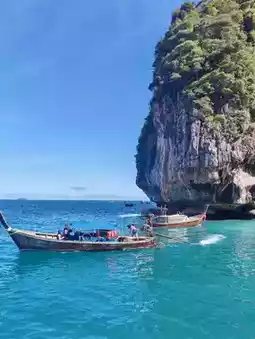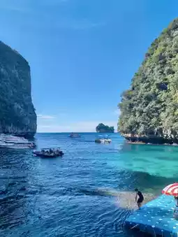 For photography enthusiasts, Maya Bay is a dream location! 📸 Every angle is so stunning, no filters needed. The turquoise waters and towering limestone mountains create a unique backdrop. 🌴 Whether you're traveling with friends or solo, you're sure to get some stunning photos. 💕 In the afternoon, the sun begins to soften, and the light reflects off the sea, creating a golden glow. The cool, refreshing air is perfect for chilling on the beach, listening to the waves, and letting your mind drift away with the breeze. 🌅 This is one of those places that never fails to excite you.