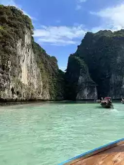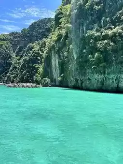 Pileh Bay is a hidden gem nestled in the Andaman Sea 💙. This lagoon boasts crystal-clear emerald green waters that are almost too stunning to believe. When the boat comes to a stop in the middle of the bay and sunlight dances on the water's surface, the scene is nothing short of cinematic 🎬. Every angle is a dream photo spot, featuring mountain views, rocky cliffs, and pristine waters. It's a place you must see with your own eyes to understand why it's often called the 'natural swimming pool of the world' 🌊. Just one visit is worth every bit of the journey.