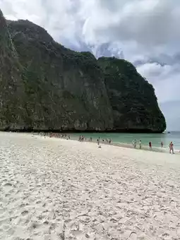Maya Bay was once made famous worldwide by the movie "The Beach" 🎬, which made it a dream destination for tourists from around the world. 🌎💫 But now, the national park has reorganized its systems to allow nature to recover. I can tell you that the sea has returned to its pristine beauty. 🐠🌿 The coral reefs are abundant. Small fish swim around your feet, so adorable! 🐟💛