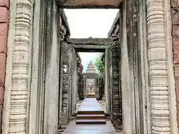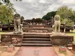 ✔️ The park contains several fascinating structures, including a pavilion located in front of the outer wall. On the left side of the pathway leading to the main castle, there is a rectangular building formerly known as the "Treasury." Additionally, the park features the Naga Bridge, situated at the southern entrance of the castle. The bridge is made of sandstone, with its railings sculpted into seven-headed Naga serpents. Other notable elements include the gateway and the sacred enclosure wall.