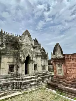 The sanctuary is meticulously designed in Khmer architectural style, featuring intricately carved lintels and laterite towers that echo the Hindu-Buddhist cosmology. Its layout, aligned with cardinal directions, symbolizes Mount Meru — the mythological center of the universe.