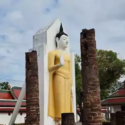 🪷 Inside the temple behind, there is also Phra Attharot, a sacred Buddha image of Phitsanulok. It is a large standing Buddha image in the attitude of forbidding relatives. It used to be covered by a chapel, but now the chapel has collapsed, so you can see the Buddha image standing outside.
