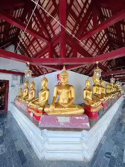 The Phra Buddha Chinnarat is a must-see when visiting Phitsanulok. It's incredibly beautiful, sacred, and revered, and is always packed with worshippers. Standing and taking photos is prohibited here, as it can disturb others.