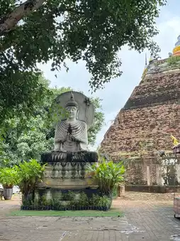 You can walk out onto the road and look across the road towards Wat Nang Phaya, where you'll see a large Somdej Nang Phaya statue in front of the temple. #WatPhitsanulok #BeautifulTemplesPhitsanulok #WatRatchaburanaPhitsanulok #WorshipPhitsanulok