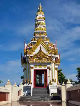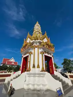 "Phitsanulok City Pillar Shrine," a sacred object of Songkhwae City, is located in the heart of the city. It houses a sacred object that holds the spiritual support of the people of Songkhwae. It is enshrined on the Nan River in Mueang District, Phitsanulok Province, on the west bank of the city. Built on April 8, 1997, it is the pillar of the Phitsanulok Provincial Court. Made from various auspicious woods, it was donated by Luang Pu Ngoen Sorayo. This pillar was carved in the style of the Fine Arts Department. It stands 3.29 meters tall and is lacquered and gilded to prevent cracking. The pillar was consecrated at Wat Phra Kaew (Temple of the Emerald Buddha). If you're passing by, we recommend stopping by to pay your respects for good fortune before exploring Phitsanulok.