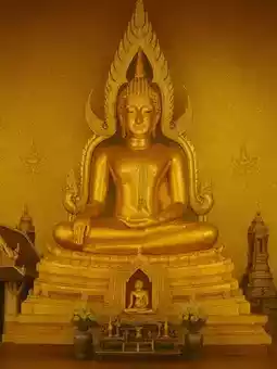 The golden light reflecting off the Buddha in the ubosot (ordination hall) brings peace and positive energy to the mind.