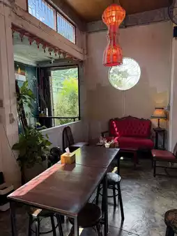 Discover a riverside cafe that has renovated the former shrine of the Goddess of Mercy into a cafe. The shrine's structure has been preserved as much as possible and blended with a contemporary Chinese style for a modern twist. The arched roof, red lanterns🏮, and Chinese motifs are preserved throughout. There are plenty of photo opportunities, and the overall atmosphere is chill and perfect for relaxing.