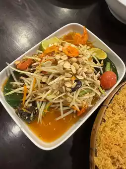 This post is about a delicious restaurant we stopped at after returning from Phu Soi Dao, which was just on our way back. This restaurant serves a wide variety of dishes, including Thai and Isaan cuisine. They also have live music, which is very chill. Every dish we ordered was truly delicious. Some dishes arrived so quickly that we didn't even have time to take photos. For example, the catfish tom yum was incredibly delicious. Our favorites were the som tam and yum, which were incredibly delicious and spicy. The restaurant prepares food quickly, the staff are friendly, and there's plenty of seating in several areas. Parking is also convenient. If you're passing through Phitsanulok, give it a try! Guaranteed deliciousness!