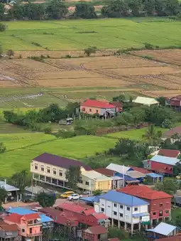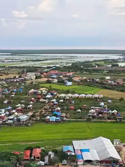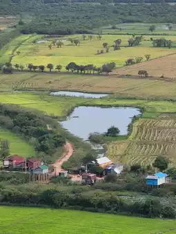The views you get at the top of Phnom Krom in Siem Reap, Cambodia 🇰🇭 are next-level amazing! Seriously, the panorama from up there is 🤩—you can spot endless rice fields stretching to the horizon, with Tonle Sap Lake glimmering in the distance. Total postcard material.