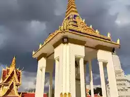 Chhaya Pavilion: Decorated with intricate carvings and glazed tiles, next to the shimmering Pol Morokot stupa