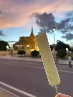 Palm sugar ice cream ($1.50) at sunset, served in coconut shells.