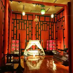 The Red Pavilion is a Thai-style wooden building painted entirely red. It was formerly the residence of royalty.
