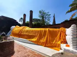 🎈Inside the chapel, there is a reclining Buddha, built during the reign of King Naresuan the Great. In the past, there was a large chapel built to cover the Buddha image People like to wrap a cloth around the reclining Buddha because it is believed that it will bring kindness, success, and protection from all dangers.