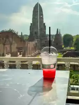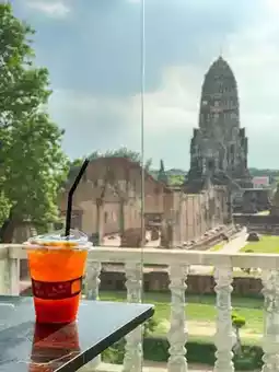 You can enjoy the view of the world heritage, Wat Ratchaburana through the glass panels
