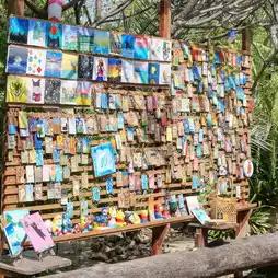 A garden house cafe with a very shady atmosphere amidst large and small trees. There are small corners throughout the cafe for us to sit and relax and use our creativity to draw and paint, creating art from our own hands. And the outdoor atmosphere with a cool breeze invites us to let loose with colors and relax. 🎨