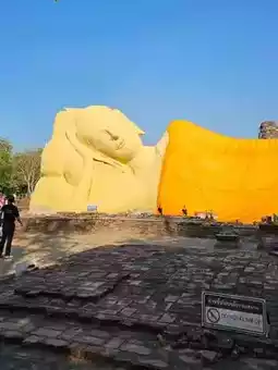 5. Wat Lokayasutha is home to a large reclining Buddha. It is believed to have been built since the early Ayutthaya period and is revered by locals. The highlight of this reclining Buddha is: A face with a gentle smile