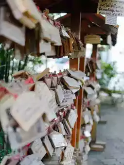 🎎 This place has kimono and yukata for rent to wear and take photos for content. There are many photo corners, including a bamboo forest, torii gates, carp flags, and a corner for hanging ema wooden plates.