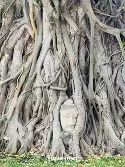 Take a trip to an ancient temple in Ayutthaya, the wonder of the Buddha's head from the roots of a Bodhi tree.