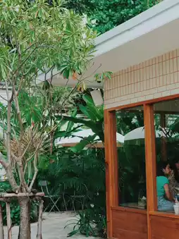 Spring Bakehouse is a homey-style cafe in Phra Nakhon Si Ayutthaya Province. It stands out with its warm white and wood tone decorations, contrasting with the green of the trees around the shop, creating a shady and comfortable atmosphere.