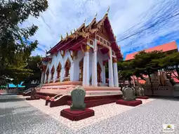 🙏The Ubosot is where Phra Phuttha Suwanna Nimit or Luang Pho Thong is enshrined, a Buddha statue with a lap width of 3.6 meters. Around the Ubosot are stone sema markers with traces of cannonballs from the Ayutthaya period.