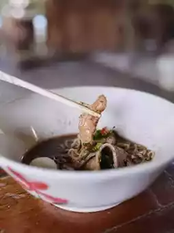 🤩 Boat Noodles in Khlong Ayutthaya is a unique boat noodle shop. With a shady and natural canal atmosphere, eating noodles here is a memorable experience. The soup is rich, spicy, and full of ingredients, both beef and pork. The meatballs are delicious. There are also many other menus to choose from, such as pork satay and desserts. The shop is open from morning to afternoon. Suitable for those who want to eat delicious food in a comfortable atmosphere.