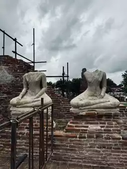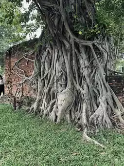 Exploring the ruins, it became clear that Ayutthaya was a thriving international trade city in the 17th century, even earning the nickname 'Venice of the East.' However, the city's history also includes its destruction by the Burmese army in the 18th century, when many Buddha heads were destroyed.