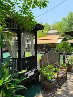 😗 Ayutthaya Retreat is a restaurant with a nice atmosphere located on the riverside in Phra Nakhon Si Ayutthaya Province. There are many types of food to choose from, including Thai food, seafood, and international food. The restaurant's recommended menu includes large grilled river prawns with firm meat, served with delicious dipping sauce, fried soft-fleshed fish with garlic, crispy outside and soft inside, spicy tom yum kung, and pineapple fried rice served in a pineapple. In addition to savory food, the restaurant also offers a variety of desserts and drinks.