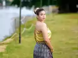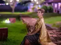 Today, I play the role of #Mae Phuttan, wearing a Thai dress, a shawl, and a sarong.