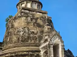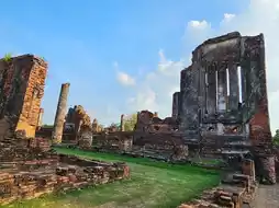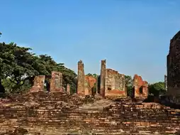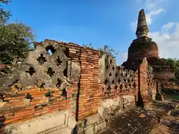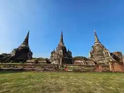 Located to the north of Wihan Phra Mongkhon Bophit, it is an important temple of Ayutthaya, which is a temple built in the Grand Palace. It is comparable to Wat Phra Sri Rattana Satsadaram or Wat Phra Kaew today. It is where the royal remains of almost every king of the Ayutthaya period are kept. The three pagodas of Wat Phra Si Sanphet, the first on the east side, contains the royal remains of King Borommatrailokanat, the second is the middle, contains the royal remains of King Borommarachathirat III, and the third on the west side, contains the royal remains of King Ramathibodi II. All three pagodas are Sri Lankan-style pagodas.