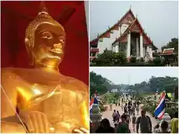 📍 Wat Mahathat.. Enshrines the Phra Borommathat in the capital, the Buddha's head in front of the temple.. Thai people, entrance fee 10 baht