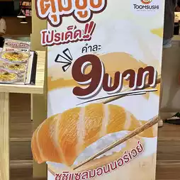 Hello, today I will review a newly opened sushi restaurant at Ayutthaya City Park. Today, they have a new opening promotion. The Norwegian salmon sushi menu is served for only 9 baht per person. This promotion is until April 20, 68. It is 9 baht per piece, but the quality is very good, not thin, and the rice is delicious. Other sushi menus start at only 10-30 baht per piece. The price is good, not expensive. The pork nabe menu is delicious. The sweet and sour sauce is recommended to order. The shop is clean, the atmosphere is good, and the staff is friendly and helpful.