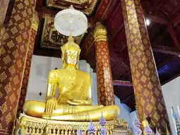 🎈The early Ayutthaya architecture of the ordination hall enshrines Phra Phutthanimit Wichitmaromoli Si Sanphet Borommatrailokanat, the principal Buddha image in the ordination hall, built at the end of the Ayutthaya period. It is a Buddha image in the Mara-Vijaya attitude, cast from bronze, dressed in royal attire. It is the largest Buddha image in the Ayutthaya period that exists today.