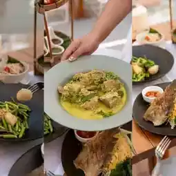 Sala Ayutthaya Restaurant, located within the Sala Ayutthaya Hotel, is one of the best riverside dining spots with a fantastic atmosphere. It offers a full view of the majestic Phutthaisawan Temple pagoda, especially stunning during the evening when the light is just right. The restaurant serves flavorful Thai cuisine made with high-quality ingredients. Recommended dishes include the aromatic Gaeng Ranjuan (a traditional Thai curry), grilled river prawns, and the classic dessert mango sticky rice. If you're visiting Ayutthaya and looking for a relaxing spot with great ambiance and delicious food, this is the place to be.