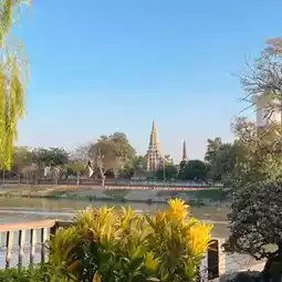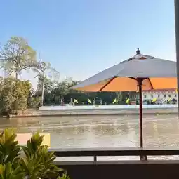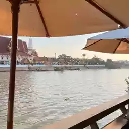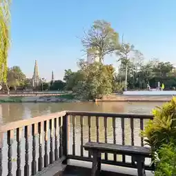 𓂃 Riverside Thai house cafe with a view of Wat Phutthaisawan pagoda