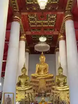 Inside the main chapel, the temple houses Phra Buddha Kasattrathirat in the Mara Vichai posture. This is one of Ayutthaya's revered sites where visitors often come to pray for kindness, popularity, and career success. Additionally, worshippers can drape cloth over Phra Buddha Chana Mara to enhance their fortune. The temple also features many other sacred objects for worship.
