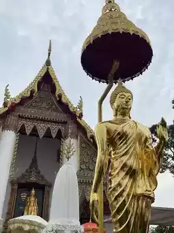Phra Buddha Chana Mara is situated in front of Phra Buddha Kasattrathirat. Worshippers often drape cloth over this statue to pray for happiness, prosperity, and success in business without obstacles.