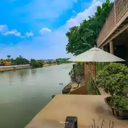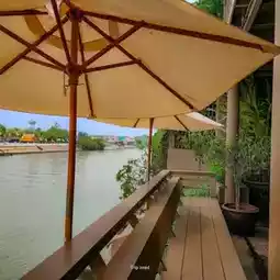 The atmosphere is along the river, with a view of the Prang and the old pagoda of Wat Phutthaisawan, which is opposite. There are many seats, both in the air-conditioned room and outside.