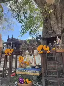In Phra Nakhon Si Ayutthaya Province, it is an ancient temple, an ancient city that is known for its magical powers, where Pu Som guards the treasures. To ask for the power of Pu Som to release the treasures to us, we have to buy offerings in front of the temple and walk inside to worship. There will be an uncle who will light a cigarette for us and clean up for us. Let me tell you that this place gives a very shady feeling. Anyone who is into the superstitions must go!! ✨📍🎉✅