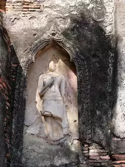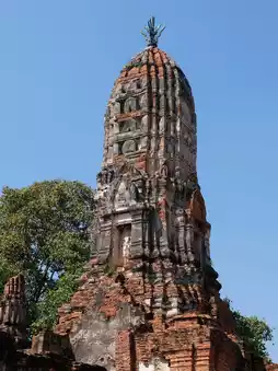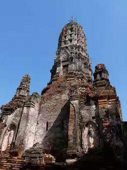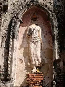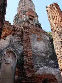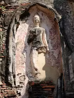 The temple's most striking feature is its ancient prang (a type of Thai-style stupa), which remains majestic despite enduring hundreds of years. The prang, built with laterite in the early Ayutthaya style, stands on a square base. Surrounding the prang are stucco decorations adorning the niches, some of which have worn away with age. However, the overall sharpness of the design still invites admiration. This prang reflects the craftsmanship of ancient artisans and clearly showcases the connection between Thai architecture and Buddhist art from the early Ayutthaya period.
