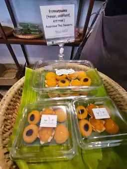 🧺 The highlight is that we get to hold a "woven basket" and walk around choosing Thai desserts ourselves!! It's like walking through an old-fashioned dessert market, but ten times more chic~ There are: ✨ Khao Tom Mat