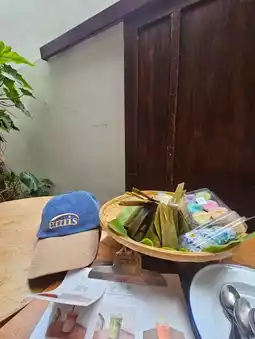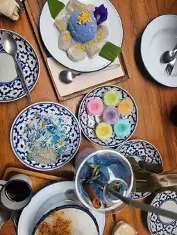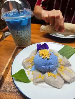 🍨 The most impressive menu is the Butterfly Pea Coconut Milk Ice Cream with Banana in Coconut Milk. It's so good that I have to give it two thumbs up! The ice cream is fragrant and creamy, and the bananas are soft and melt in your mouth. It's a Thai flavor, but it's served in a cute and modern way.