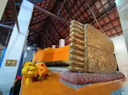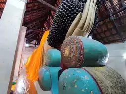 🎈The reclining Buddha chapel houses the large reclining Buddha, over 600 years old, a stucco Buddha statue from the early Ayutthaya period, which is similar to the Sukhothai style. It is 21 meters long. It is believed that if you come to pay homage, you will receive kindness and popularity. And dispel bad things