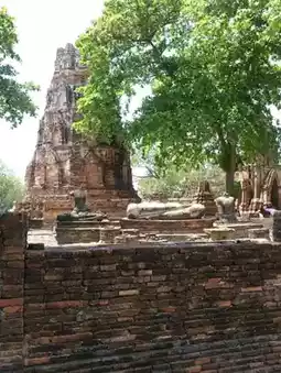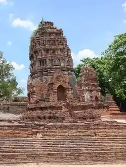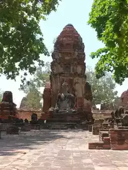 It is a prang built in the early Ayutthaya period, which was influenced by the Khmer prang. The lower floor is built of laterite, but the newly added upper part is made of brick and mortar. King Prasat Thong renovated the prang by adding a higher level than before. But now the top has collapsed, leaving only the balcony. It is a pity because there is evidence that it is a very large prang and was very beautifully built. In 1956, the Fine Arts Department excavated this prang and found many important antiques, namely a stone urn. Inside, there are 7 layers of stupas, divided into tin, silver, nacre, black wood, red sandalwood, glass, garnet, and gold. The inner layer contains the relics of the Lord Buddha and valuable jewelry. Currently, the relics are enshrined in the Chao Sam Phraya National Museum. Another interesting thing in the temple is The head of a sandstone Buddha statue, covered with tree roots, is believed to have fallen to the base of a tree during the fall of Ayutthaya, covering it with tree roots, creating a unique beauty. It is located at the foot of Saphan Pa Than, east of Wat Phra Si Sanphet. Some chronicles state that this temple was built during the reign of King Borommarachathirat I. Later, King Ramesuan ordered the relics to be enshrined under the base of the main prang of the temple in 1927.