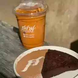 Across from the shop, you can see Wat Phutthaisawan. There are seats to choose from, both air-conditioned and natural breeze zones. The drink and bakery menus are very delicious. For those who like refreshing, easy-to-drink coffee, we recommend "Syama Cold Brew Yuzu". It's very refreshing and delicious. Order a blueberry cheesecake and a soft cookie with very little sugar to eat together. It goes very well together.