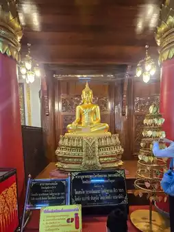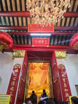 ✨️ Large temple, large Buddha, large wood, large church, the biggest of the big ones. It is a temple that enshrines a large Luang Pho To in the Mara-Vijaya posture, a golden Buddha statue built before Ayutthaya. It is revered by both Thais and Chinese people. Therefore, there are Chinese-style offerings outside before entering the church.